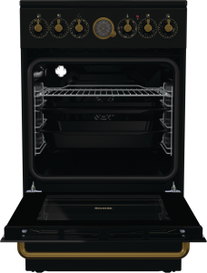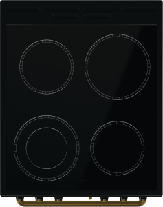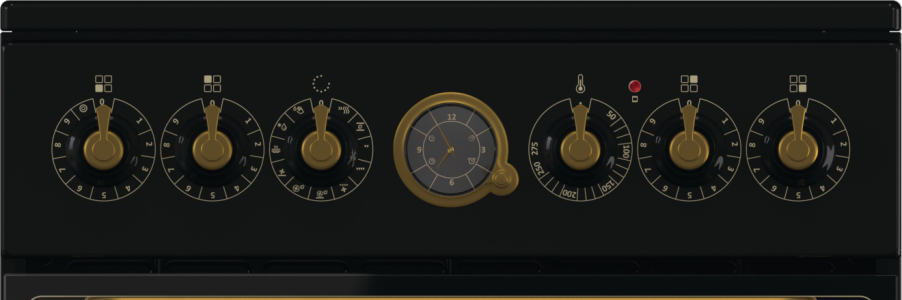 Кроме одноконтурных конфорок стеклокерамическая варочная поверхность оснащена двухконтурной зоной нагрева, которая позволяет использовать посуду различного размера. Для каждой конфорки имеется индикатор остаточного тепла, который показывает, что зона еще горячая и к ней нельзя прикасаться. Гладкую варочную поверхность легко чистить, кроме того рамка слегка приподнята, чтобы убежавшая жидкость не проливалась на пол. Электронный аналоговый программатор классическом стиле — одно из главных украшений всей коллекции Classico. Программатор оснащен функцией таймера и позволяет запрограммировать время отложенного старта и время завершения работы духовки. О завершении приготовления программатор извещает звуковым сигналом. Классический дизайн программатора, его ручек и окантовки бронзового цвета гармонично дополняет общий дизайн духовки.