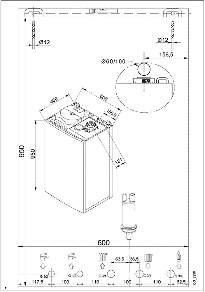 Диаметр дымохода, мм: 60/100