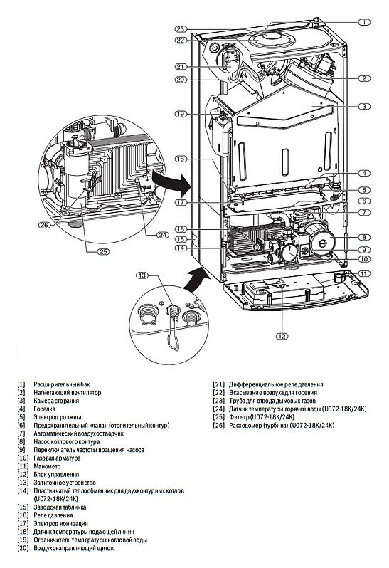 Газовый котел Buderus Logamax U072-18 (18 кВт) идеально подходит для загородного дома или городской квартиры площадью до 180м2. Он предназначен для выработки тепла. В случае необходимости создания системы ГВС, необходимо подключить бойлер косвенного нагрева. Для этого теплоагрегат уже оснащен насосом отопительного контура и 3-ходовым клапаном.Инструкция к котлу Buderus Logamax