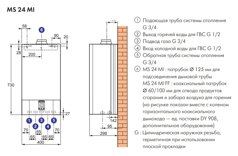 Котел серии MS 24 MI предназначен для отопления и горячего водоснабжения.