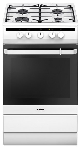Не слишком крупная (85х50х60 см) плита классического сдержанного белого цвета универсально подходит под различные оформления кухонь, в особенности небольшой площади. Работу плиты и духового шкафа легко отрегулировать с помощью простого механического управления, которое подразумевает применение поворотных переключателей. На варочной поверхности с эмалированным покрытием расположены 4 конфорки: 2 средник (6.5 см), большая (9 см) и маленькая (4 см). Газовая духовка внутренней полостью в 56 л имеет функцию газ-контроля, что гарантирует вам безопасное пользование данной моделью. Встроенная подсветка позволит определить готовность выпечки. Плита Hansa FCGW51001 имеет выдвижной ящик для посуды на роликах, в который можно убрать кастрюли и сковородки после приготовления пищи.