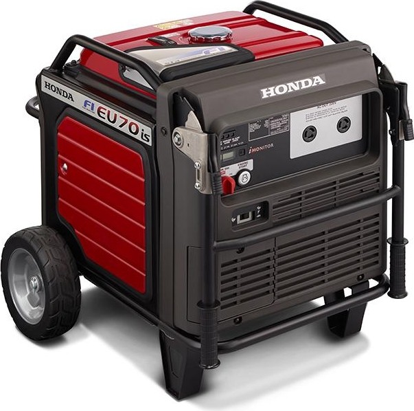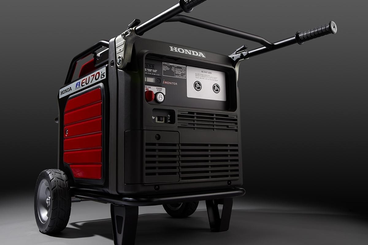 Для тихой работы предусмотрен шумозащитный кожух, благодаря чему бензоэлектрогенератор Honda EU 70iS не мешает окружающим отдыхать и работать. Устройство можно без труда транспортировать к нужному месту, поскольку оно комплектуется выдвижными рукоятками и колесами. Максимальная мощность генератора составляет 7 кВт.