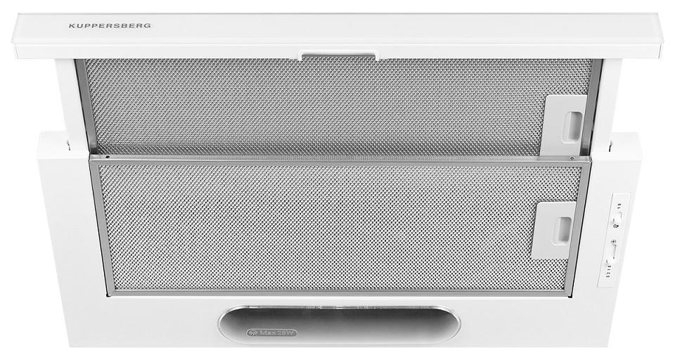 Дизайн: Встраиваемая вытяжка Kuppersberg Slimlux IV 60 GW представлена в белом цвете и прекрасно подойдет к любой современной кухне.