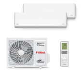 Организовать микроклимат во всей квартире или доме можно благодаря мульти сплит системе Funai RAM-I-SG25HP.W01 + RAM-I-SG30HP.W01 x 2 / RAM-I-3OK80HP.01/U. Все блоки подключаются к одному наружному блоку и управляются отдельно в пределах установленного режима охлаждения/обогрева.