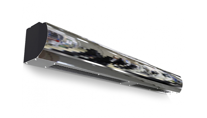 Передняя панель завес Тепломаш серии Бриллиант из полированной нержавеющей стали с декоративными гранями. Устройства управления встроены в корпус.
