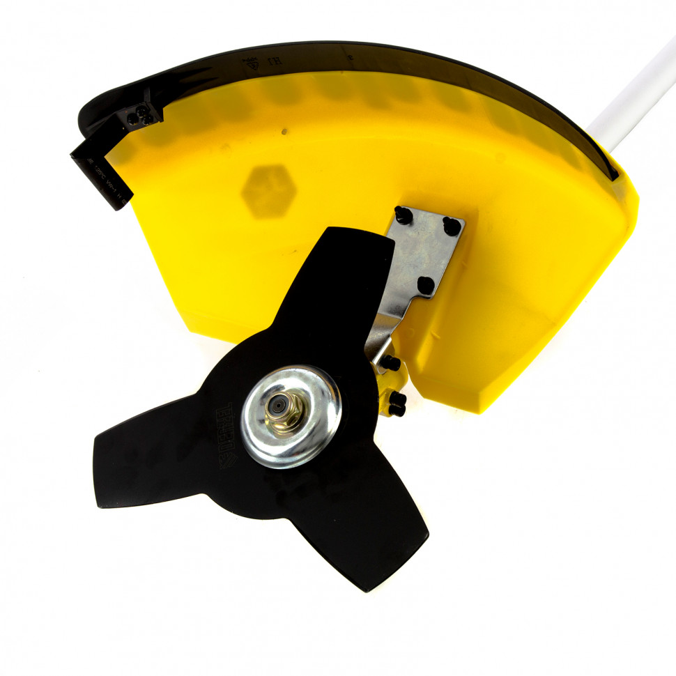 В зависимости от рельефа местности и плотности растительного покрова предусмотрена быстрая замена режущего инструмента: стальной режущий диск, предназначенный для работы с жесткой травой и молодым кустарником, меняется на режущую полуавтоматическую триммерную катушку с леской для скашивания травы.