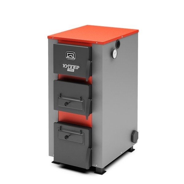 Когда в котле Теплодар КУППЕР ПРО 36 сгорает основное топливо, он продолжает свою работу и сохраняет температуру которую вы задали. Площадь обогреваемого помещения может достигать 360 м² максимум. При необходимости вы можете установить пеллетную или газовую горелку. Приборы для чистки котла входят в комплект, чего нельзя сказать о терморегуляторе и дымоходе.
